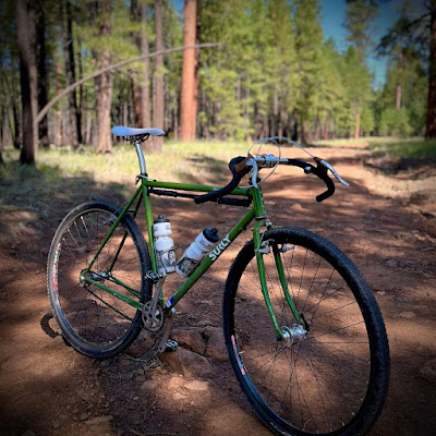 Nevertheless, while never having been raced, my Cross-Check, as the dings in its paintjob will attest, has seen thousands of miles of trails and roads, both dirt and paved, over the years. It's that much fun to ride. I consider it a kind of essential bicycle... as in it's commonly been my response to the question I often get when folks visit my garage, "If you had to sell all your bikes and could only keep one, which one do you think you would save?" For a long, long time, my answer was this simple, inexpensive, utilitarian bike, my Surly Cross-Check. Though frankly, in the last year-and-a-half, my answer's certainly changed to my Coconino, just because it's truly my bike and plays especially beautiful music for me.